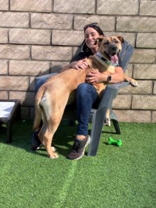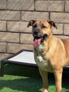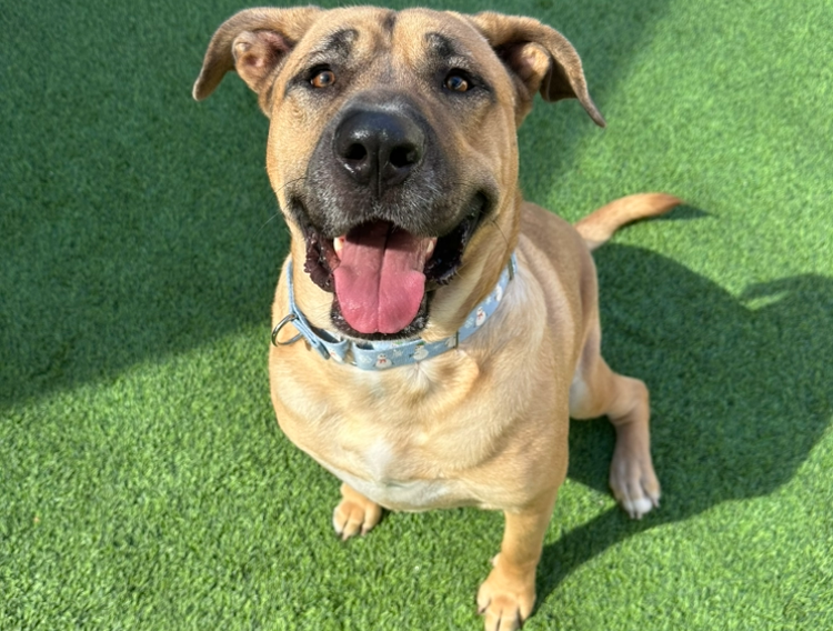A stunning, large mixed-breed girl with a short tan and black coat and a heart as soft as her big brown eyes. Ava may be a little shy when you first meet her, but give her just a little time—and maybe a taste of cream cheese—and you’ll see her warm up into the sweetest, most loyal companion.