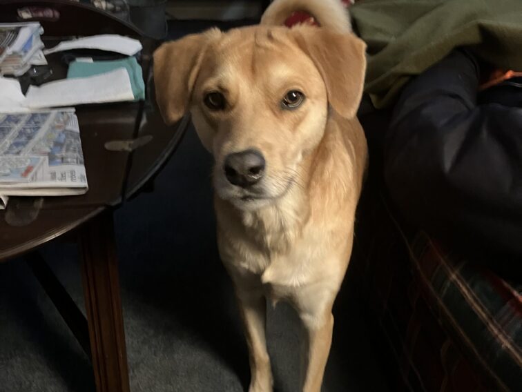 - Female, Retriever/Mix, currently 31.3 lbs.