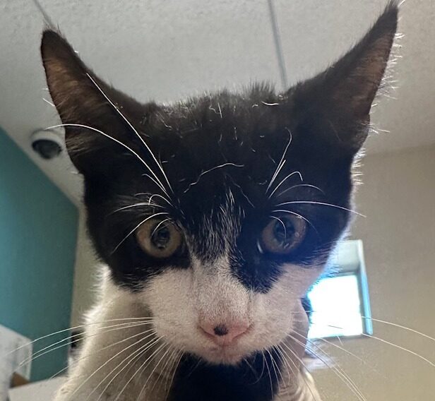 Meet Bones, a dashing 2-month-old tuxedo kitten with a sleek black-and-white coat and a big personality packed into a tiny body! This charming little guy is full of energy and curiosity—always ready to chase toys, explore new spaces, and entertain you with his playful antics. Bones may look fancy in his built-in tuxedo, but he’s all about fun, cuddles, and purring his way into your heart. He’s litter box trained, up-to-date on age-appropriate vaccinations, and will be neutered before adoption. If you’re looking for a fun-loving companion with classic good looks and kitten charm, Bones is ready to be your new best friend!