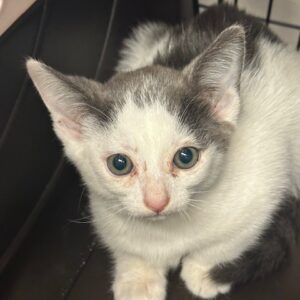 Meet Boo, a sweet and playful 2-month-old female Domestic Shorthair with a soft white and gray coat and a heart full of curiosity. This little kitten loves exploring, chasing toys, and snuggling up for naps after a good play session. Boo is looking for a loving home where she can grow up feeling safe, cherished, and part of the family. With her gentle nature and adorable personality, she’s sure to bring joy and warmth to anyone lucky enough to adopt her!