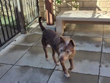Meet our gentle giant, a large-breed terrier mix whose soft, chocolate-grey coat is as warm and comforting as her personality. This sweet, even-tempered girl adores quiet moments with her people …