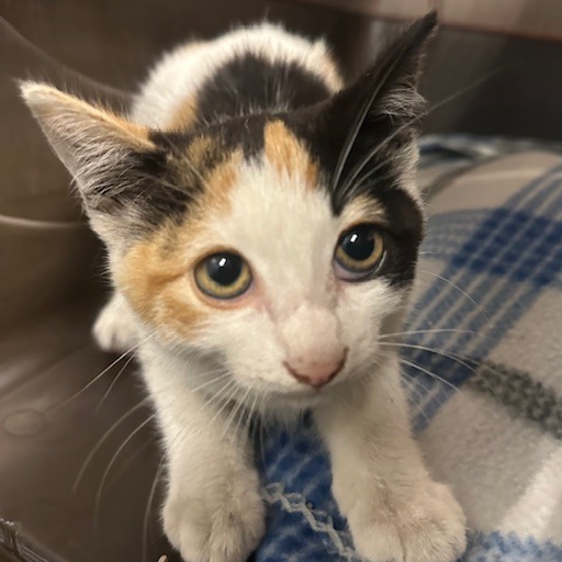 Meet Cider, a sweet and snuggly 1-month-old calico kitten with a beautiful blend of orange, black, and white fur. This tiny girl is full of curiosity and charm, just starting to explore the world with wide eyes and a playful spirit. She loves soft blankets, gentle cuddles, and discovering new things each day. Though she’s still growing and learning, Cider is already showing signs of being a loving companion who will thrive in a patient, caring home. Up to date on age-appropriate vet care and working on her litter training, Cider is ready to bring warmth, joy, and a whole lot of purrs to her forever family.