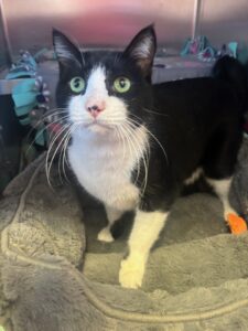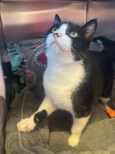Meet Mario, a striking black and white gentleman with a bold personality and a heart ready to bond deeply with his favorite human. Mario thrives in a calm, pet-free home where he can be the center of attention—just the way he likes it. Independent yet affectionate, he enjoys lounging in sunny spots, supervising your daily activities, and soaking up chin scratches on his terms. Mario is confident, charming, and full of character, making him the perfect companion for someone looking for a one-and-only feline friend. If you’re ready to give a deserving cat the spotlight he craves, Mario is waiting to make your home his kingdom.