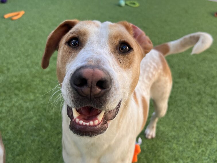 Meet Stitch, a 3-year-old male hound mix with a heart as big as his namesake! While a reserved at first, Stitch is sure to steal your heart—and your treats. He has truly blossomed with the care and encouragement of staff and volunteers at the shelter. When his friends come to visit, he runs around excitedly, grabs toys, and plays happily with his sister, Lilo.